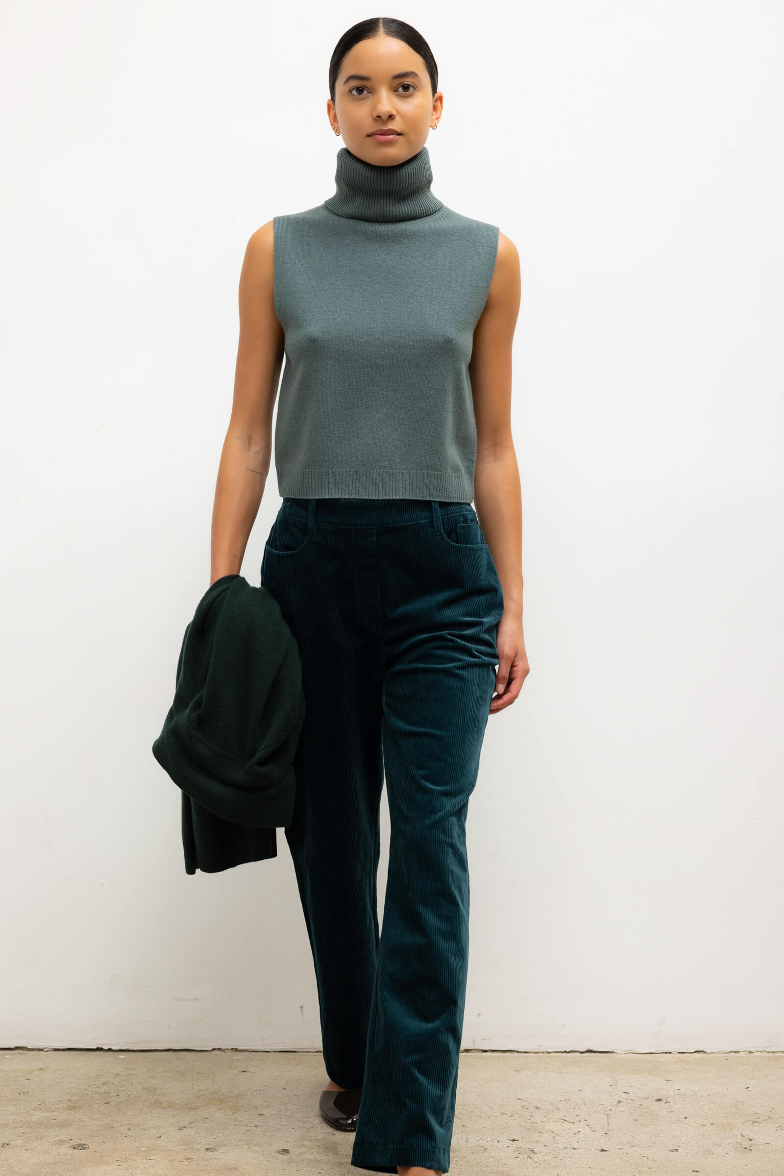 Knit in our plush Zoe Wool/Cashmere Knit, The Zoe Sleeveless Turtleneck is a fitted shell silhouette with a fold-over turtleneck. We're wearing this by itself - then layered underneath matching Zoe Knits and crisp button-downs.