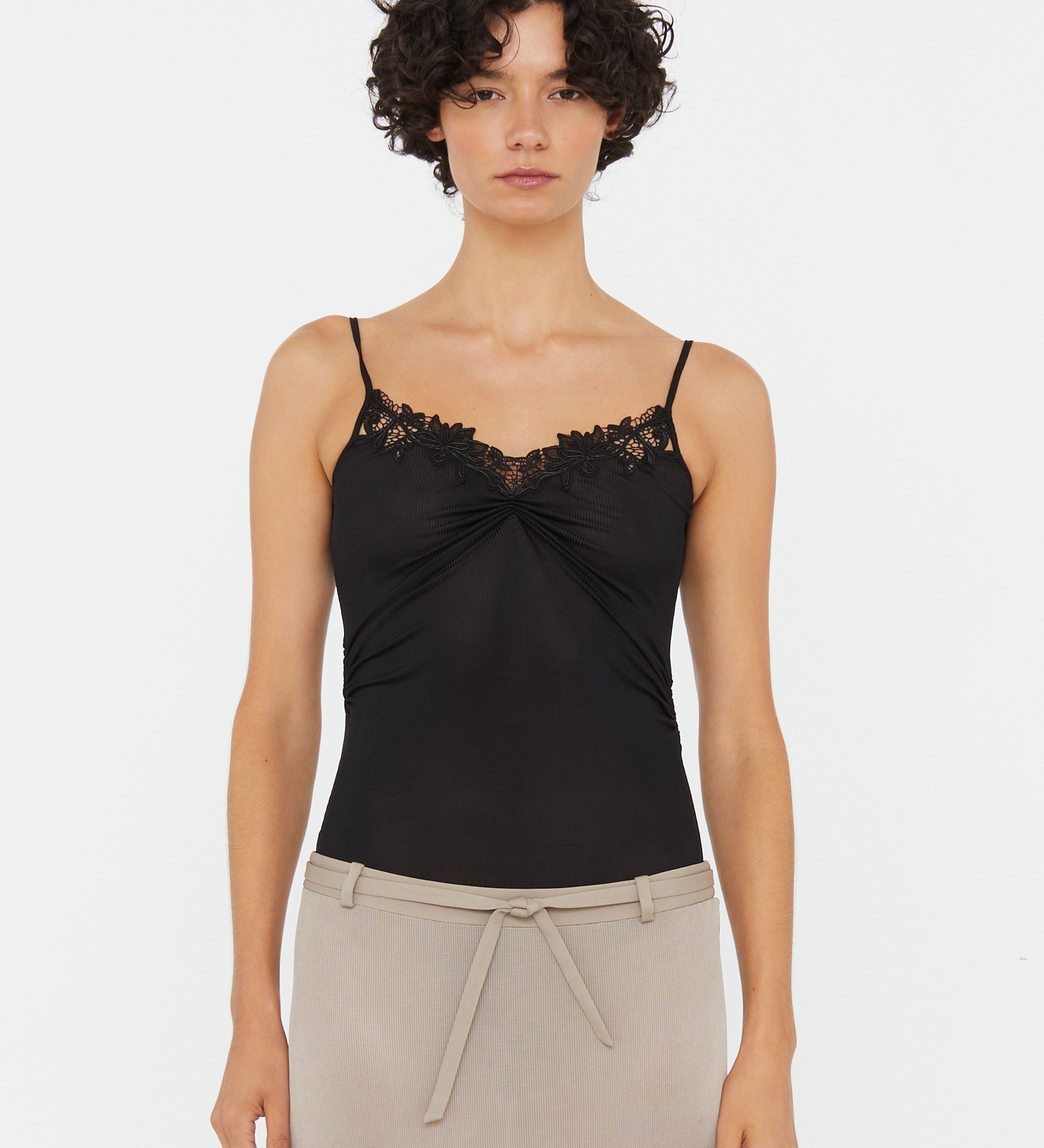 Christopher Esber - Hibiscus Embroidered Rib Foldover Cami