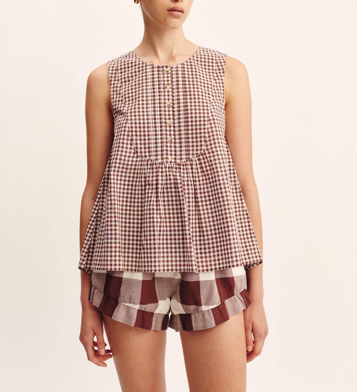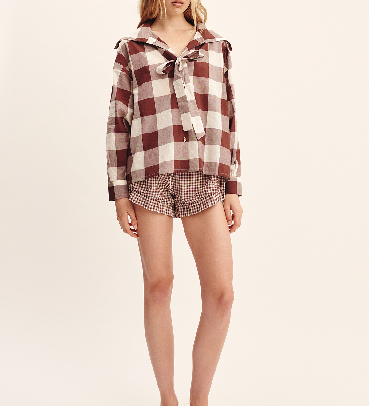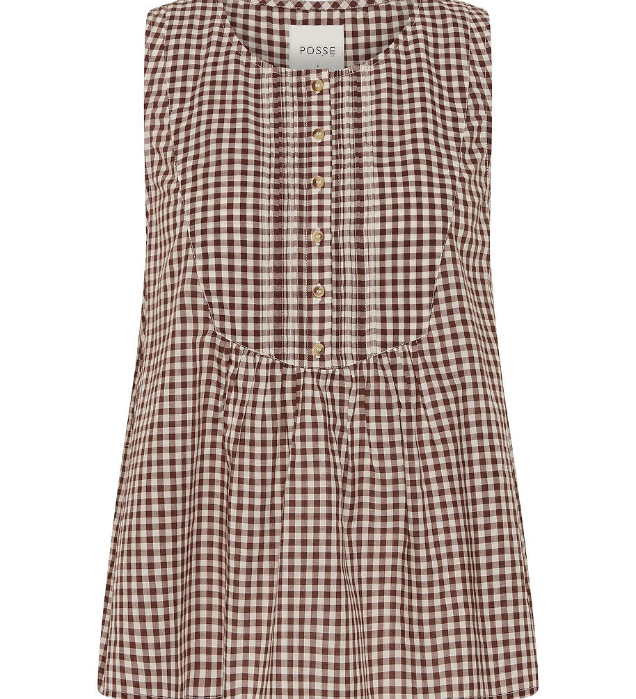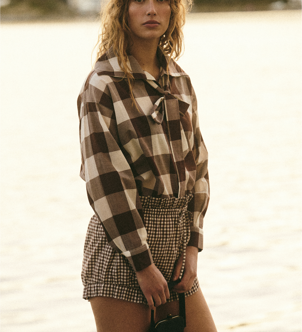 Posse - CALLIE BLOUSE - PETITE MOCHA GINGHAM