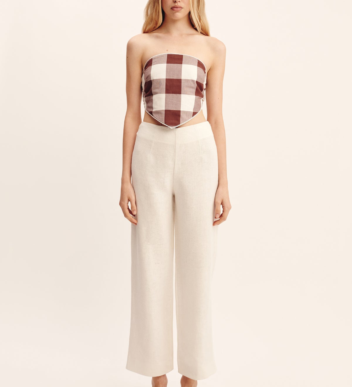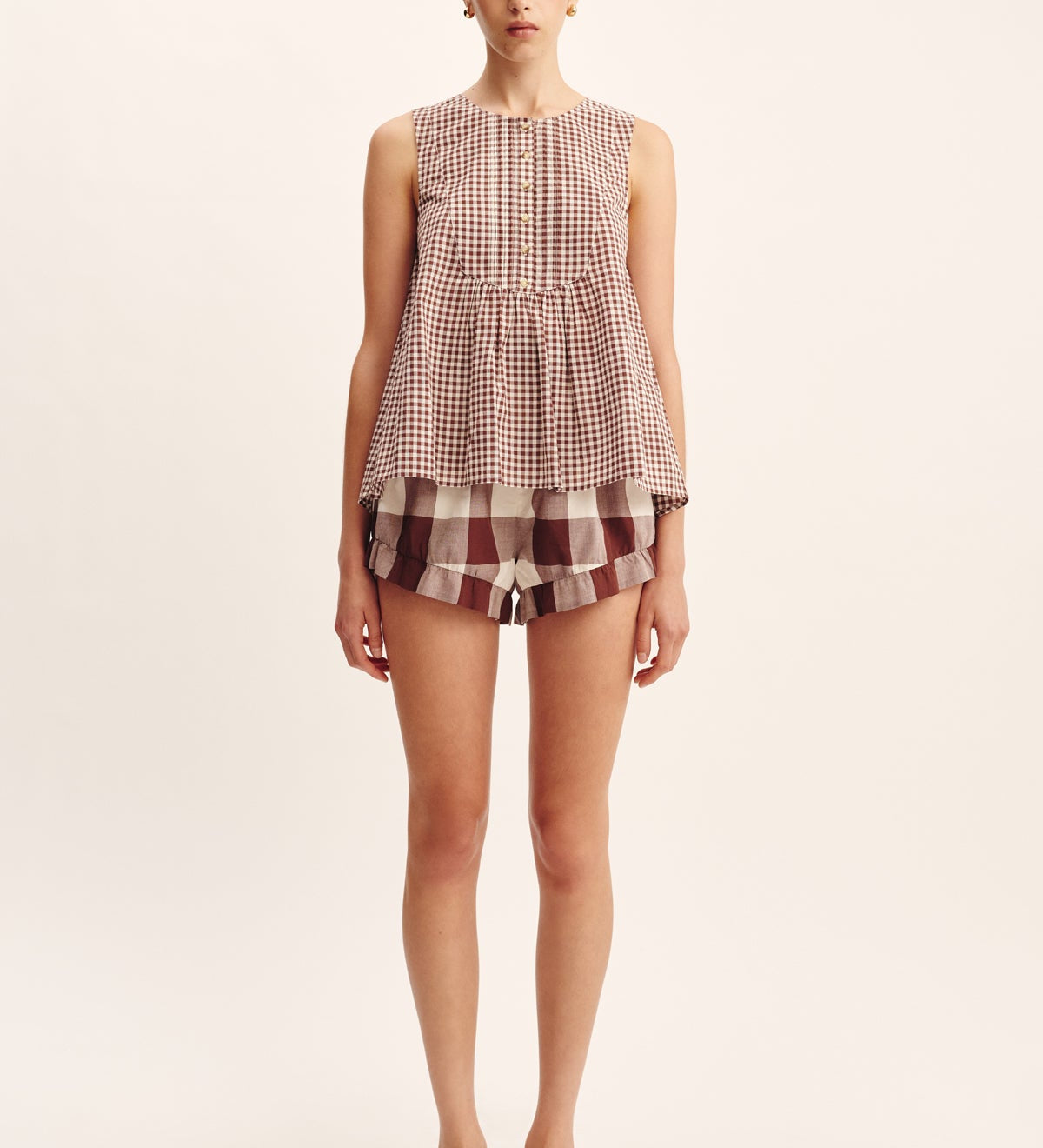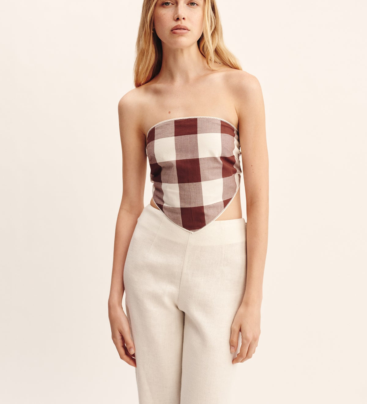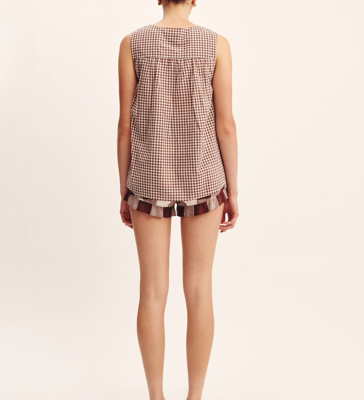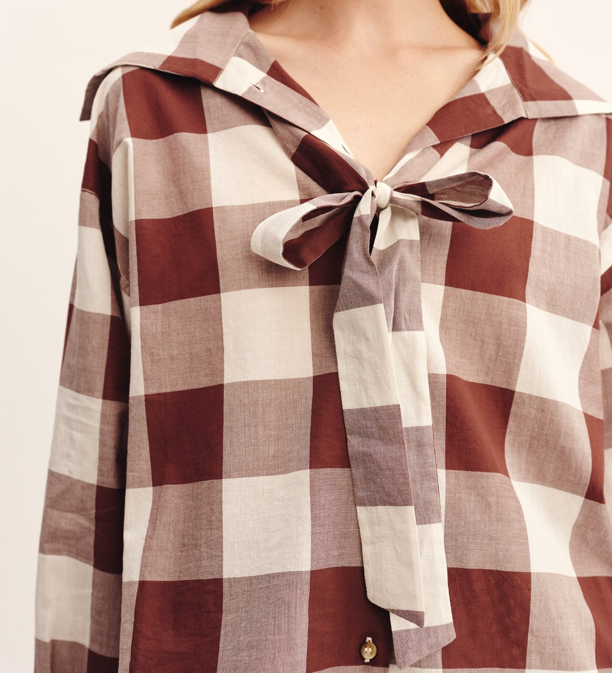 Posse - CALLIE TIE TOP - MOCHA GINGHAM