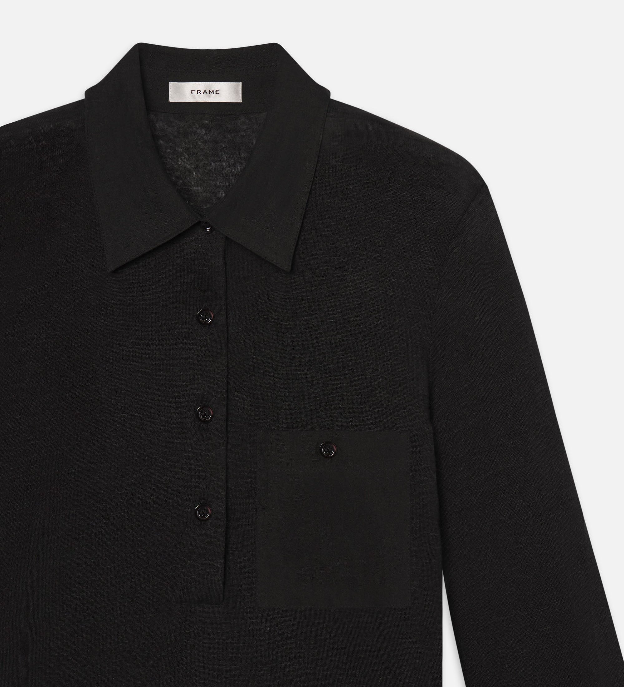 FRAME - The Long Sleeve Caddy Polo -- Black