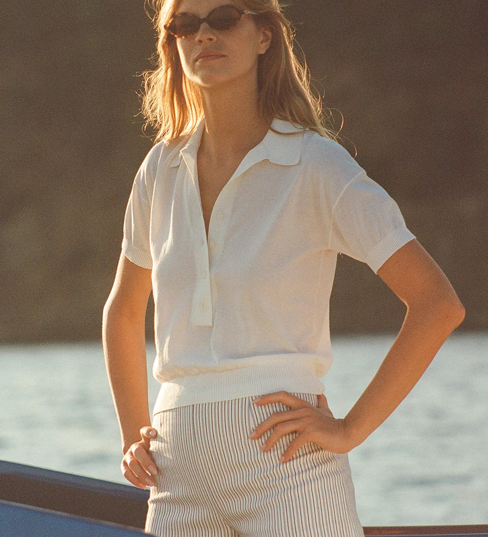 Faithfull - Sable Polo Shirt Accordion Stripe Brown Beige