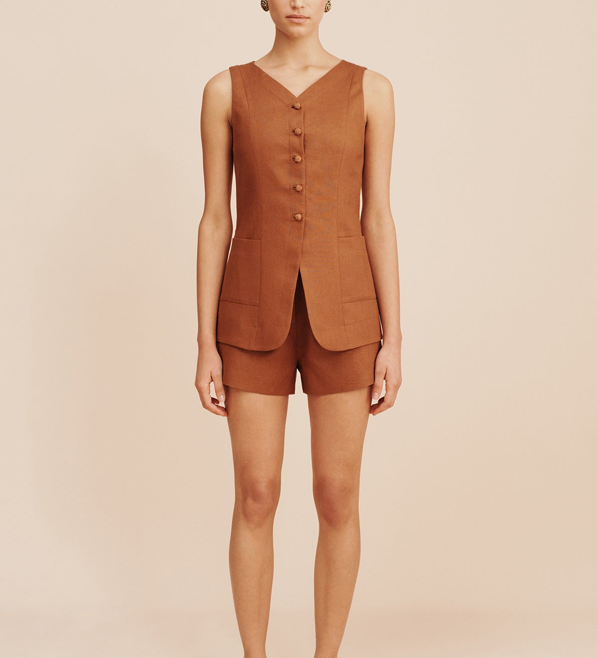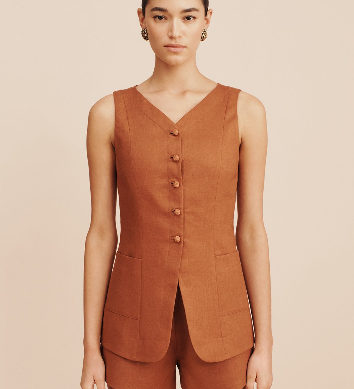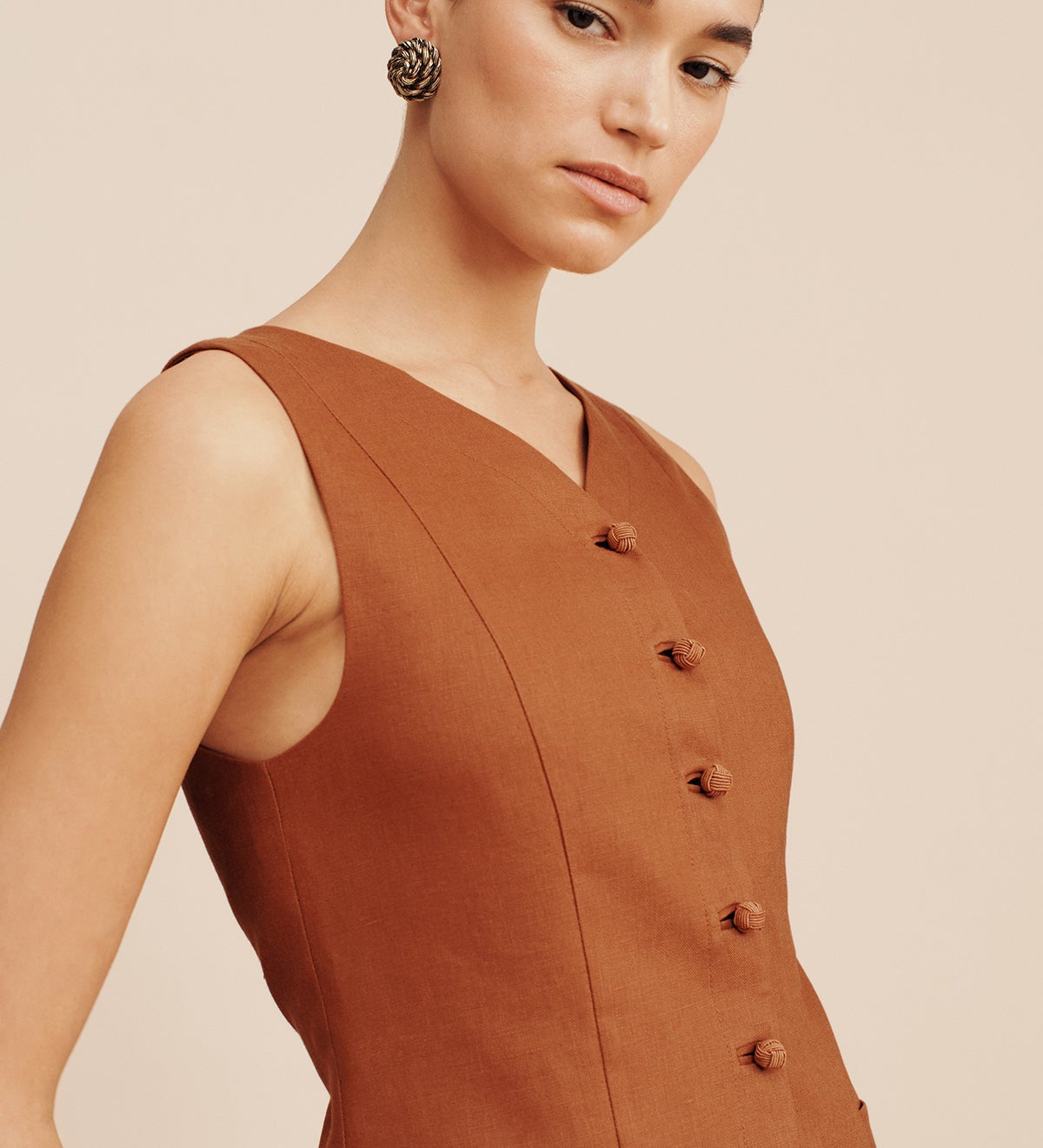 Posse - LORENZO HIGH NECK VEST - CHESTNUT