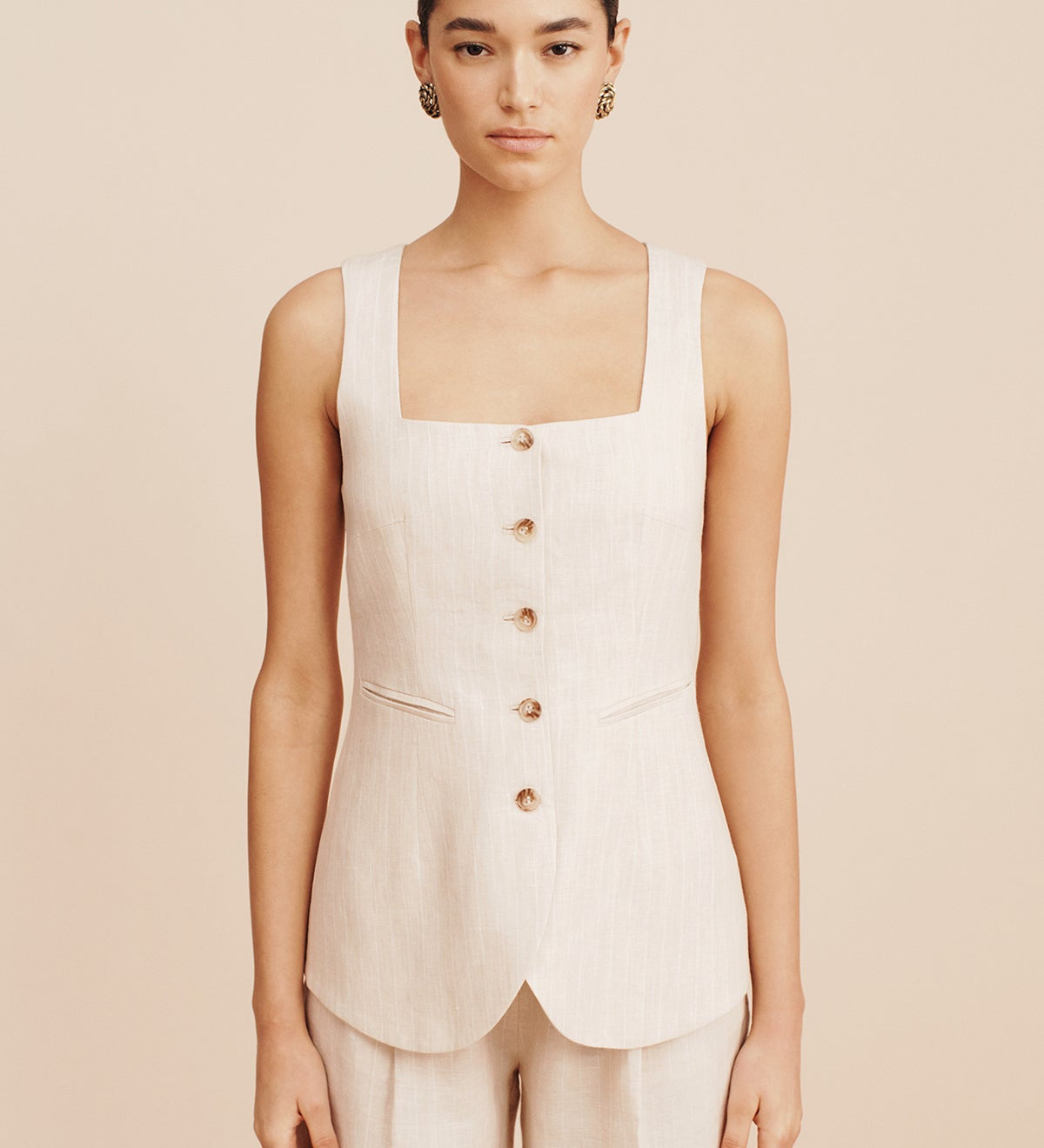 Posse - LUCILLE GILET - BEIGE PINSTRIPE