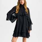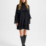 A dramatic silhouette designed to turn heads. Crafted from premium silk, the Adlington mini dress features a halter neckline that flows into an A-line silhouette with cascading tiered ruffles. Sheer long sleeves accentuate the halter shape, adding to the romance of the design. Perfect for date night or event dressing—pair with tall boots or strappy heels to complete the look.
