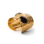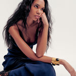 A cuff that makes a statement. Designed in Paris and handcrafted in India, the Ajourée cuff is made from 22k gold-plated brass with a hammered finish. Adjustable for ease, it’s defined by two bezel-set smoky quartz cabochons sourced from Jaipur. It’s part of our jewelry capsule with Parisian artist and designer Sylvia Toledano—colorful, meticulously crafted talismans that embody a luxe bohemian spirit and complement our Fall 2025 collection.