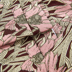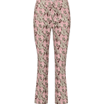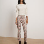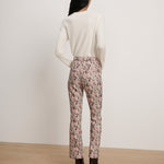 A VB favorite, reimagined in burgundy and pink florals. The Arte pants are cropped and high-waisted with a slim fit and slight flare. Flat welt pockets and a hidden hook-and-bar closure create a sleek, tailored look, while metallic gold threads add a subtle sheen for an elevated finish. Perfect for everyday polish, style it with the coordinating Jessup vest for a matching set or with a cashmere tank top for something more relaxed.