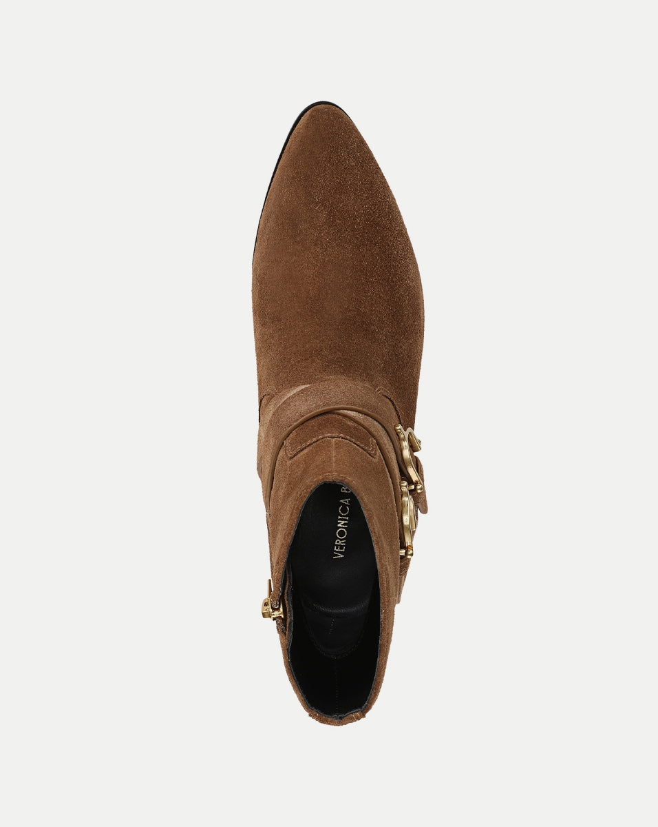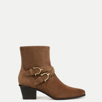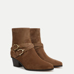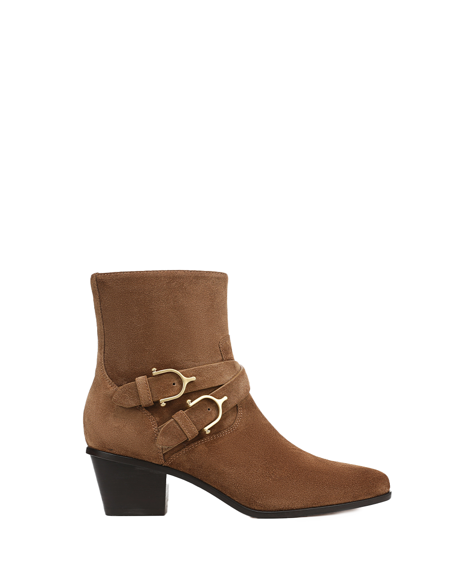 A Western-inspired classic, made for the everyday. Crafted from premium suede, the Ashby reimagines traditional details—like the pointed toe and curved vamp overlay—in a more casual, ankle-height silhouette. The crossover adjustable belt straps, complete with stirrup-inspired buckles, add to its Western appeal. Finished with a block heel and a side zipper closure for easy on-and-off wear, it pairs seamlessly with slim denim or wide-leg trousers alike.