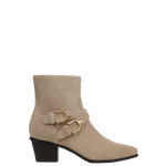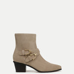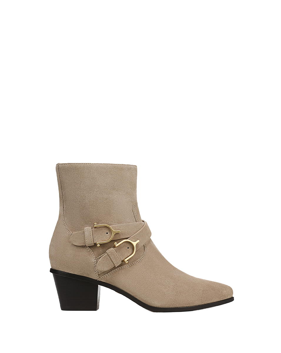 A Western-inspired classic, made for the everyday. Crafted from premium suede, the Ashby reimagines traditional details—like the pointed toe and curved vamp overlay—in a more casual, ankle-height silhouette. The crossover adjustable belt straps, complete with stirrup-inspired buckles, add to its Western appeal. Finished with a block heel and a side zipper closure for easy on-and-off wear, it pairs seamlessly with slim denim or wide-leg trousers alike.