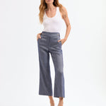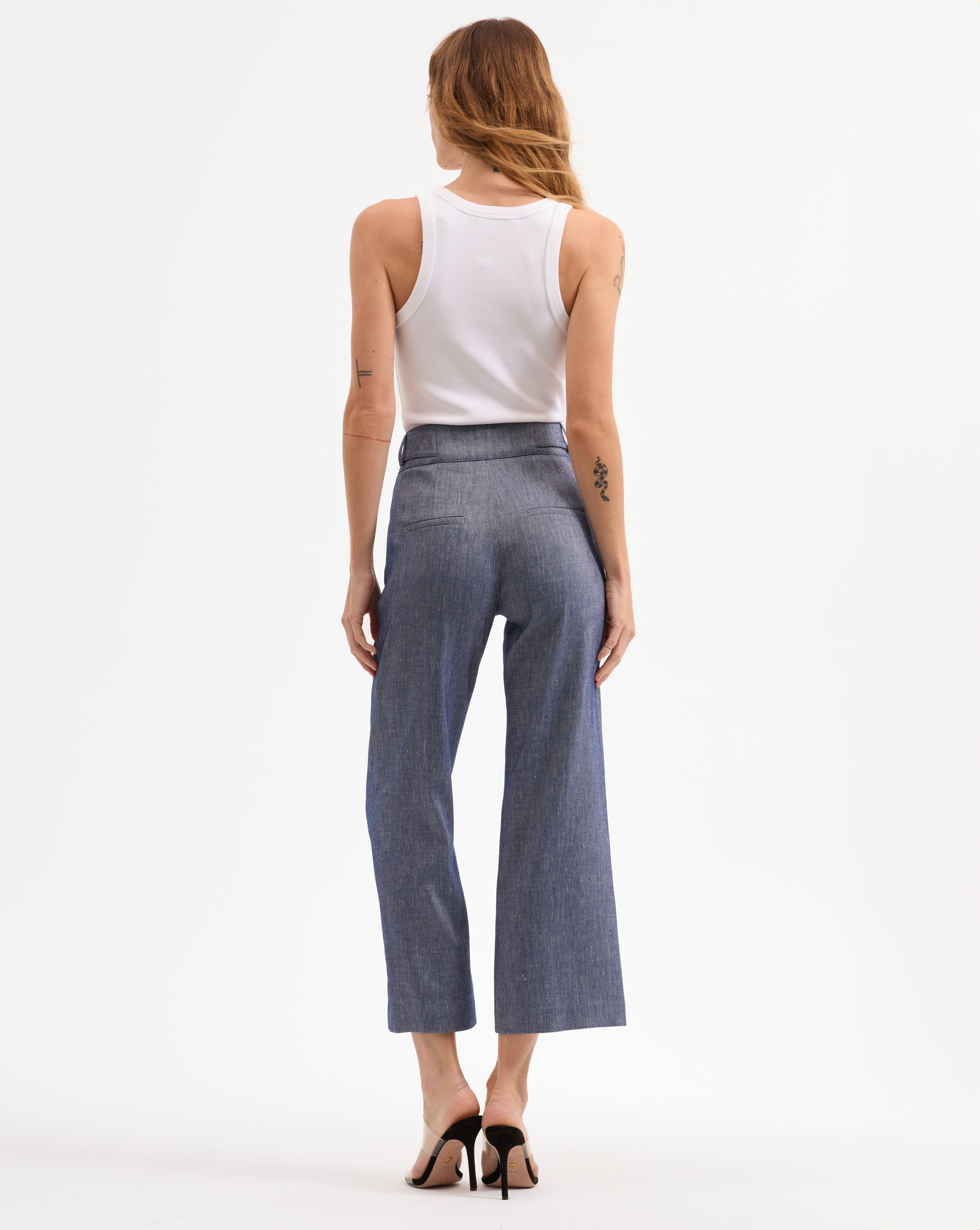 Meet the Renzo’s linen sister—the Aubrie pant. This chic, cropped style is a relaxed take on the best-selling Renzo, with a wider leg and a breathable linen body. Perfect for the office and beyond, these precision-tailored pants are the definition of refined style. Wear with a coordinating jacket for a coordinated look, or tuck in a breezy top for a dinner out.