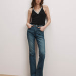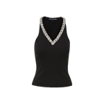 Not your average tank top. Crafted from softly ribbed stretch cotton, the Ayres features a slim, body-skimming fit with a V-neck racerback silhouette, finished with an intricately rhinestone-embellished neckline. Equal parts effortless and statement-making, pair it with denim and heels for a chic dinner-and-drinks look.