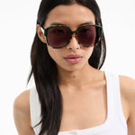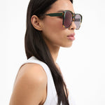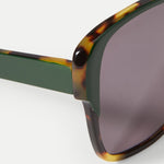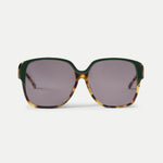 Meet Brigitte—the oversized shade, perfected. Produced by the renowned Selima Optique, it’s crafted from premium cellulose acetate and defined by a bold, softly squared silhouette. Its two-tone tortoise frame is accented with rich forest green along the temples and brow line, while durable dark gray CR-39 lenses, sturdy Monel hinges, and a gold-engraved Veronica Beard logo at the temple interior complete the look. Your go-to for brighter days ahead, it brings a polished ease to every look.