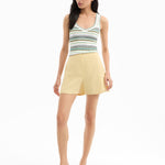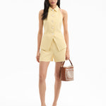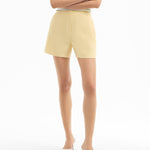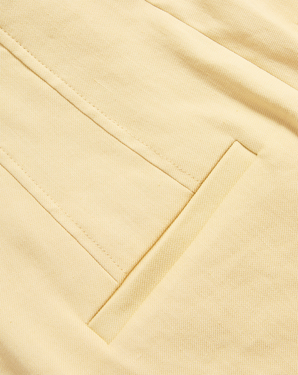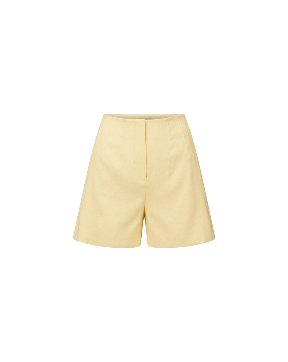 The essential tailored short. Made from Italian stretch linen, the Elbe in butter yellow features a clean, flat-front silhouette for easy styling. Pair with a simple knit or tank top for laid-back ease or, for a more polished look, pair with the matching Miller dickey jacket for a chic summer suiting.