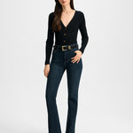 Meet the Cameron, our classic bootcut jean. Crafted from premium stretch cotton, its mid-rise silhouette is fitted through the hips and thighs, falling to a subtly flared hem. Pair this versatile dark-wash denim with a simple white tee and a heel for added polish.