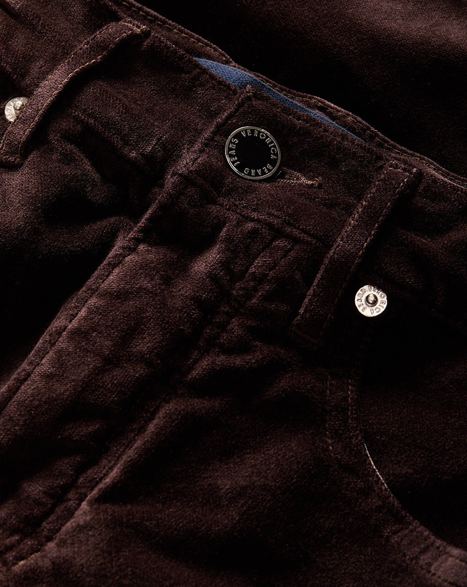 Our classic high-rise flare, now in velvet. Everything else you love about the style remains the same, from the slim fit to the slightly cropped length that suits flats and heels alike. Pair with a lightweight sweater and loafers for effortless prep.