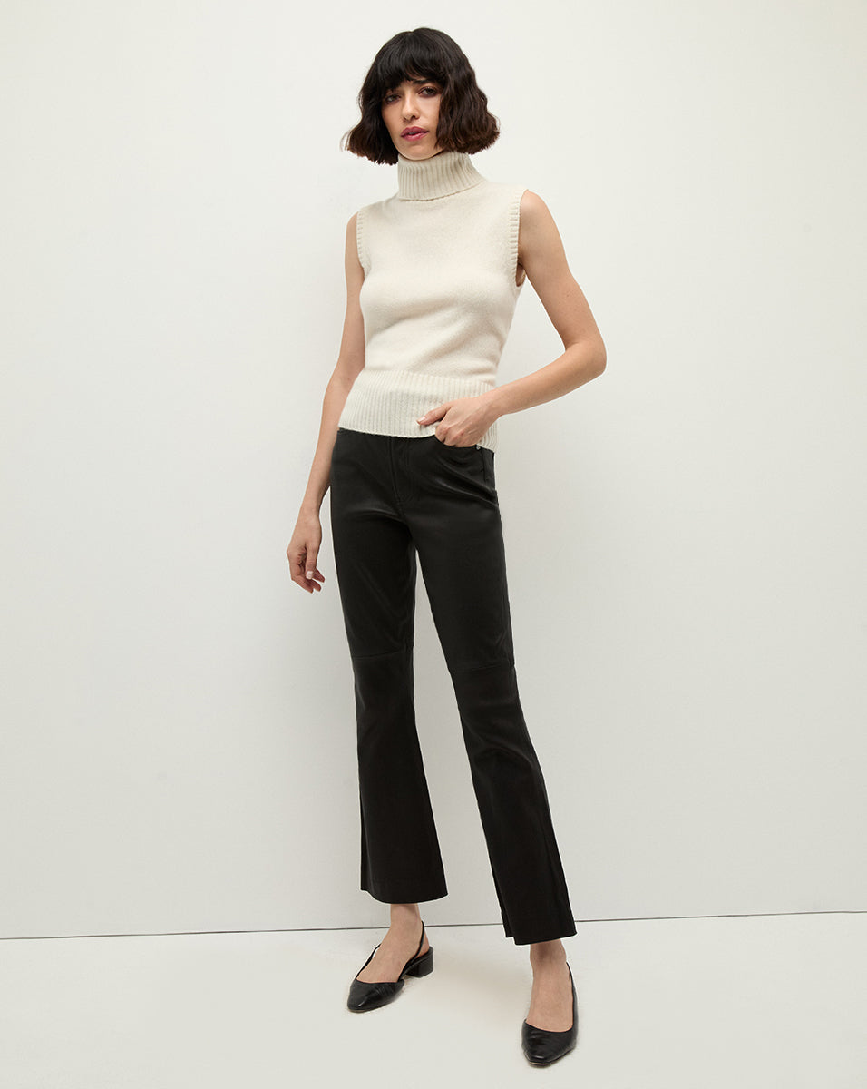 Our classic high-rise flare, now in bonded leather. Everything else you love about the style remains the same, from the slim fit to the slightly cropped length that suits flats and heels alike. Dress it up or down, the style is surprisingly versatile.