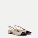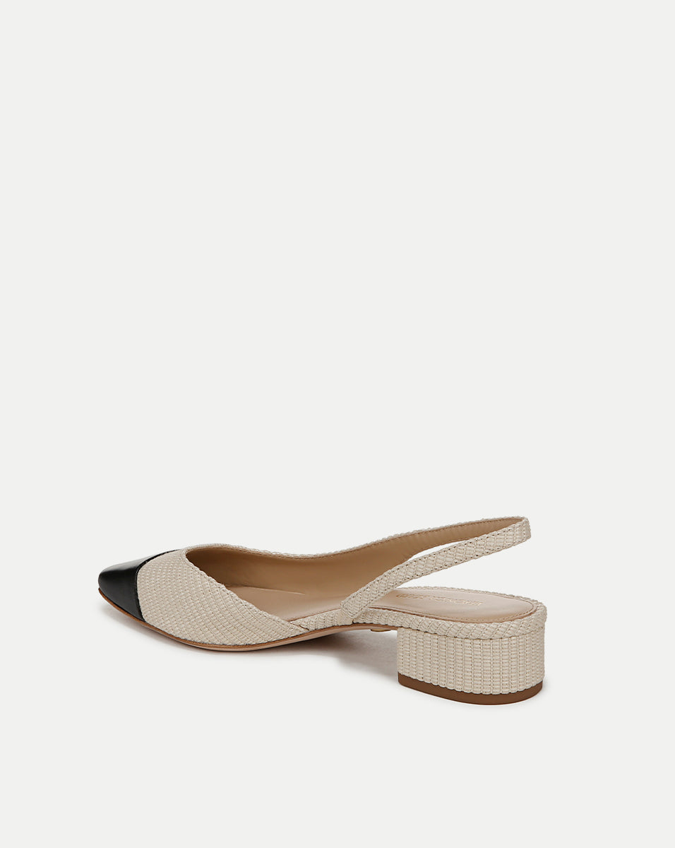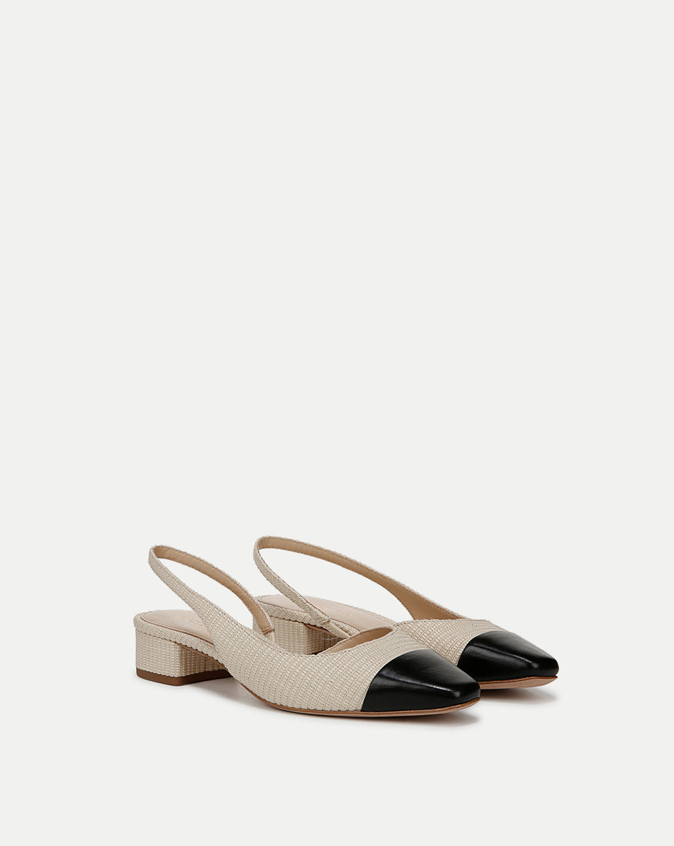 Meet Cecile, our take on the classic cap-toe slingback. Expertly crafted from raffia, this color-blocked style features a tapered suede square toe, a one-inch block heel and an elasticized strap for comfort. Pair with jeans and a button-down—this adds instant polish.