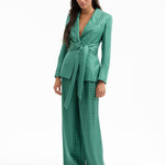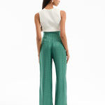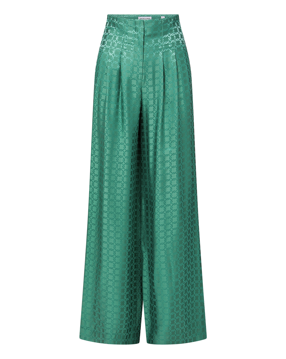 The chicest—and most comfortable—pants you’ll own this spring. Crafted from a luxe silk-viscose blend in vibrant green with a tonal chain print, this fluid high-rise, wide-leg pant features a flattering Hollywood waistband for an elongating effect. Front pleats, side slant pockets, and back welt pockets complete the look. For a polished yet effortless spring set, pair with the coordinating Issel jacket—or tuck in a simple tee or tank top for a more laid-back look.