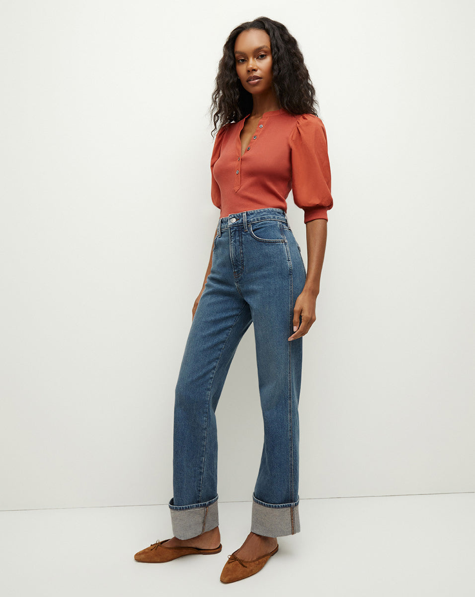 This best-selling top is a feminine take on the classic henley. Defined by puffed elbow-length sleeves, a split V-neck, and half placket, this VB favorite is perfect for work, weekend, and everywhere in between.