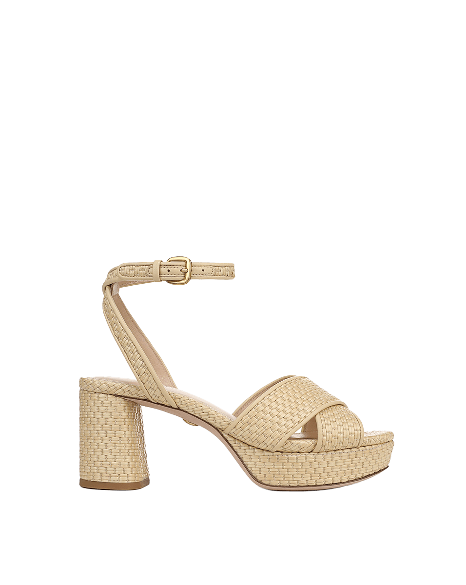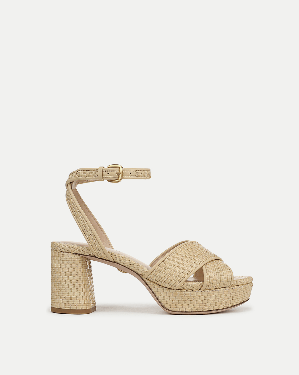 Elevate any look with the Danika. Expertly crafted from chic raffia, the style boasts a one-inch platform, a two-inch heel, and an adjustable ankle strap. Finished with a cushioned footbed, it's the perfect statement heel for sun-kissed days—just add a sundress and shades.