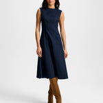 The denim dress, elevated. Crafted from our signature stretch denim tailoring, the Dulce features a flattering fit-and-flare silhouette with angled bodice seams and vertical princess seams to define the waist. Additional darting enhances the shape, while a full skirt with a wide hem adds soft structure. A versatile length and shape, it pairs well with boots, heels, flats...you name it.