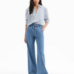 The ultimate effortless jean. Made from lightweight, non-stretch denim, the high-waisted Dunford is defined by a relaxed wide-leg silhouette and a comfortable drawstring waist. Side slip pockets and a single back pocket complete the look. Easy to wear and endlessly versatile, it’s the perfect blend of laid-back and polished. Pair with the Spruce shirt for a fresh take on double denim.
