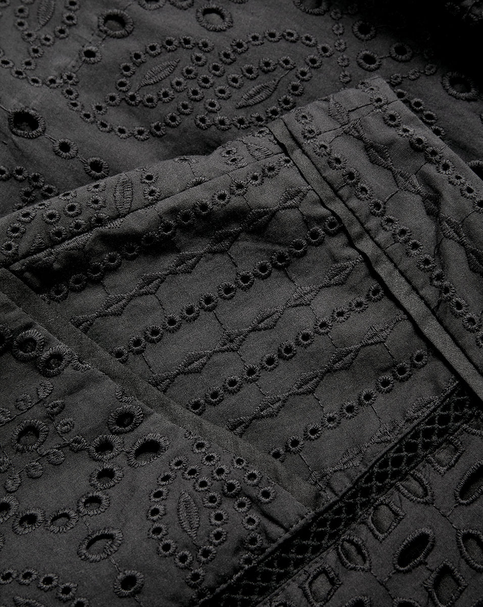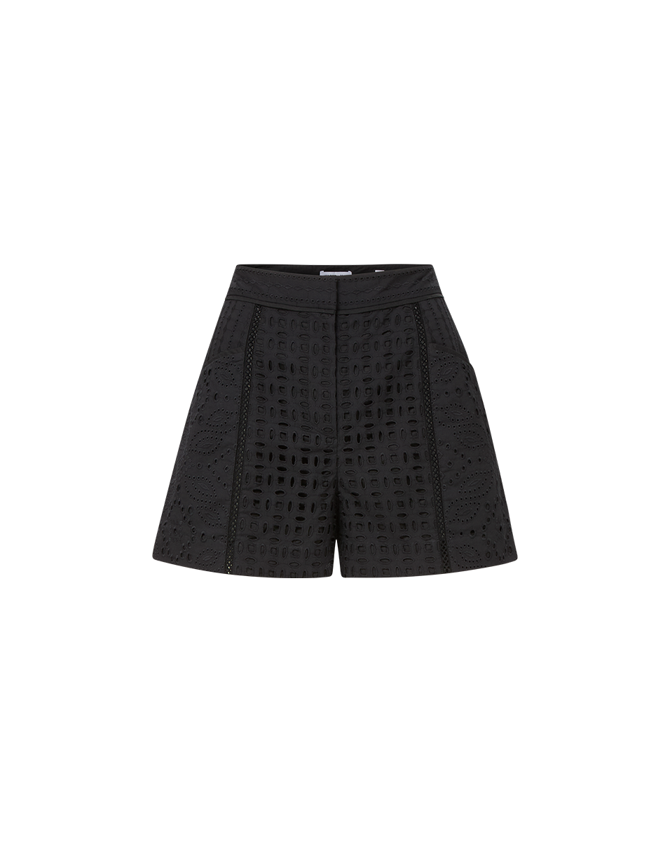 Relaxed, with pretty details—meet the black Fabian short. Expertly tailored from lightweight cotton, this charming style features a beautiful allover eyelet design. Effortless and chic, it's perfect for weekends and getaways. Pair with a t-shirt to elevate the everyday or wear with the matching Spruce top for a summer-ready matching set.