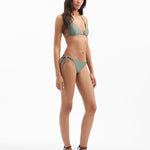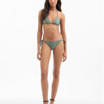 The Gavitella is bikini bottom is a classic string style that sits low and straight across the hips. Made in the USA from a nylon stretch blend, it's fully lined and offers smooth comfort and superior stretch—both in and out of the water. Pair with the matching Cala bikini top for sun-kissed days at the beach or by the pool. Available in light blue and army green.