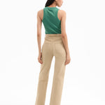 Made from super-stretch twill, the Heather pant is a high-waisted, straight-leg silhouette with oversized front patch pockets and a deep-stitched hem. The rope belt adds a touch of rustic charm while the khaki color ensures wear-with-everything versatility. Consider this your new wardrobe go-to, from weekends to wanderlust.