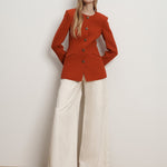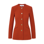 A tailored jacket with a clean, collarless look. Expertly crafted from an Italian virgin-wool blend, the Jessup features a darted waist and a subtly flared hem for flattering shape, finished with a jewel neckline. Slanted welt pockets and enamel-accented buttons complete the look. Style it buttoned with jeans or trousers for instant polish.