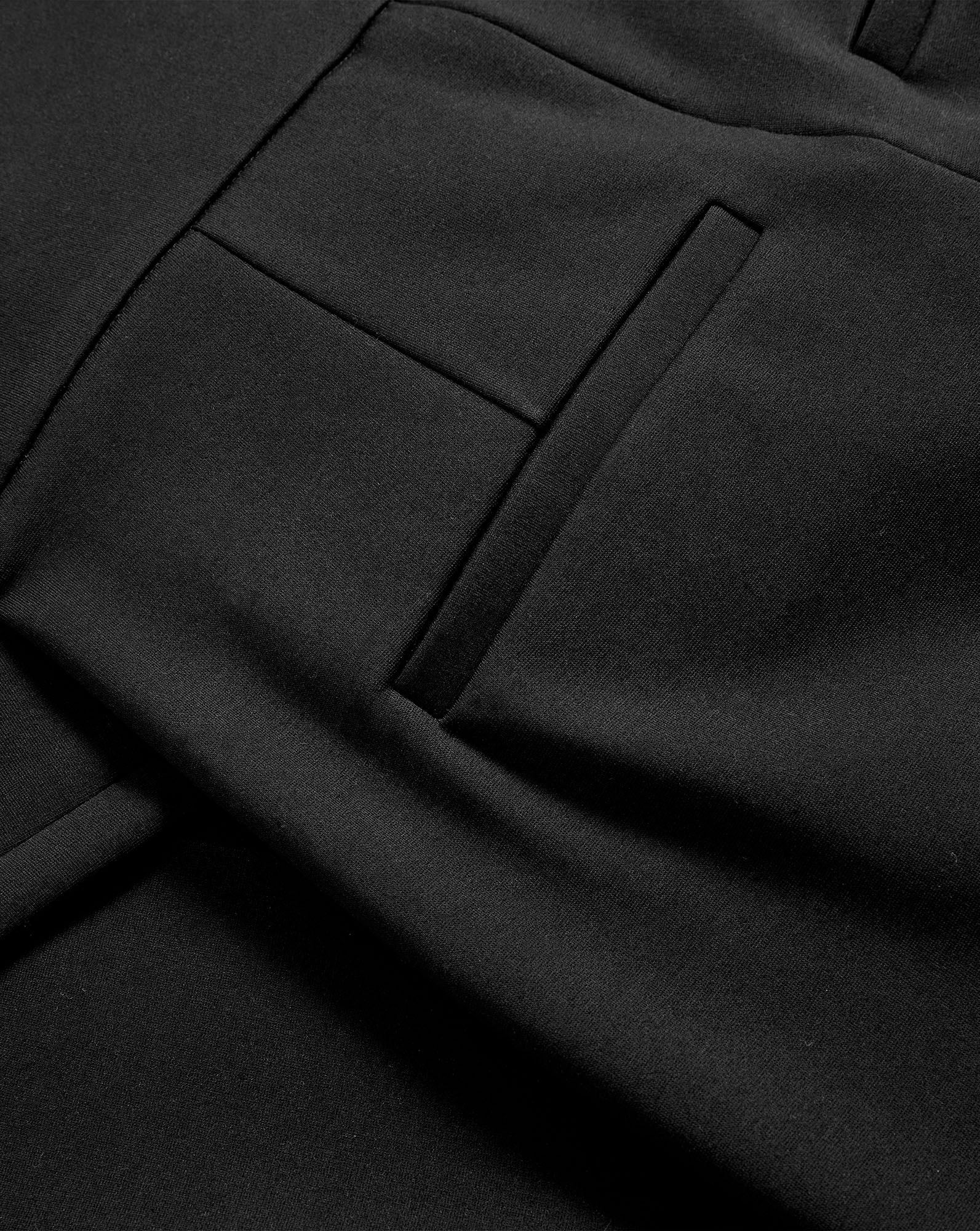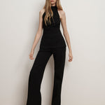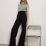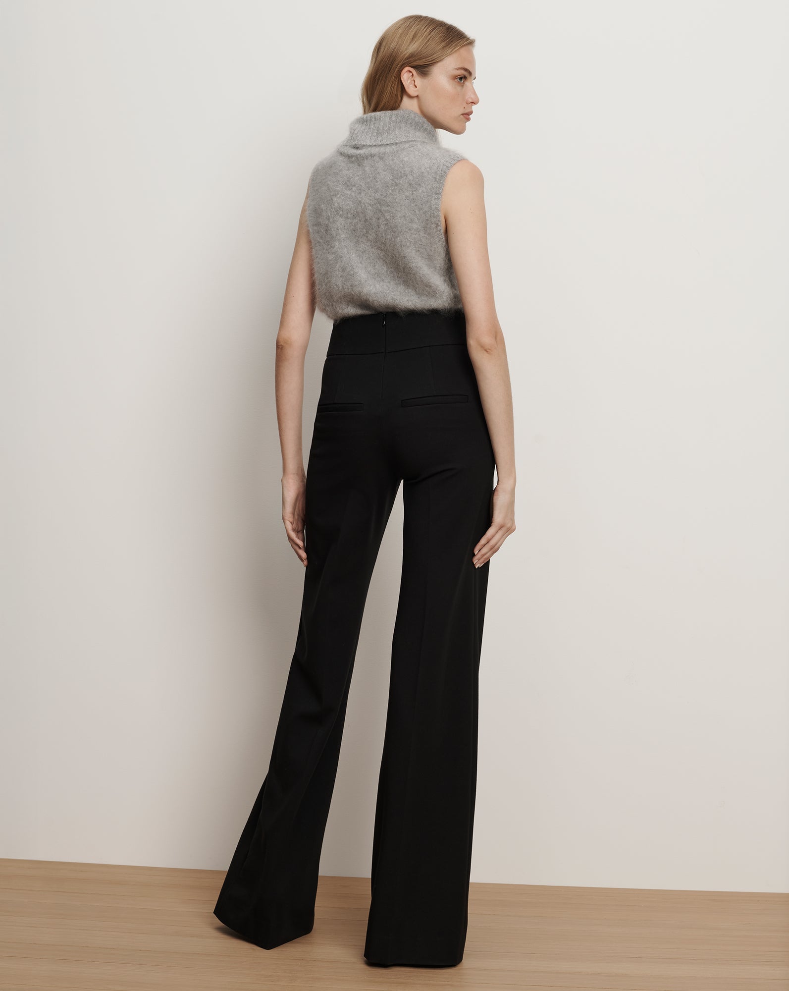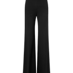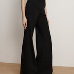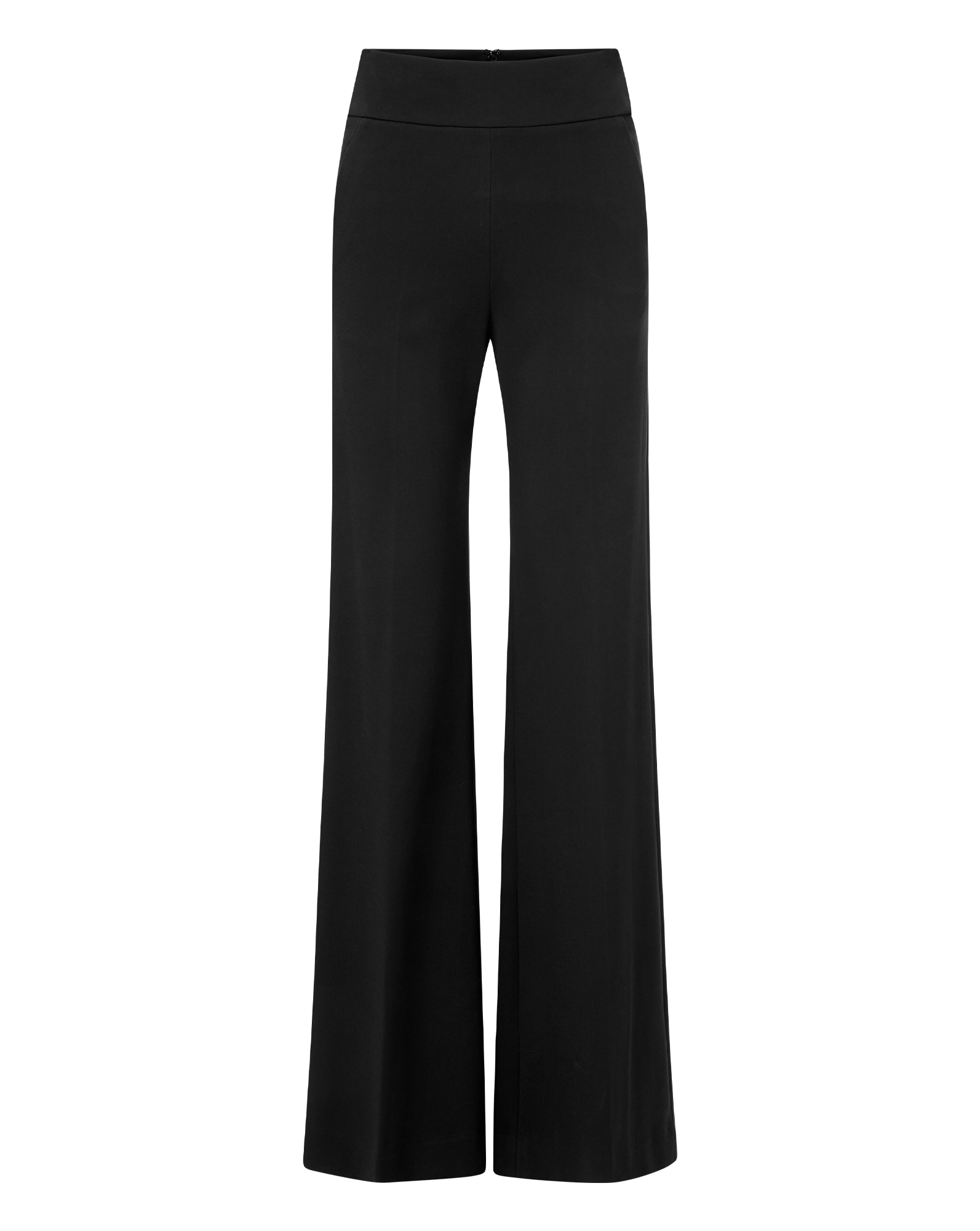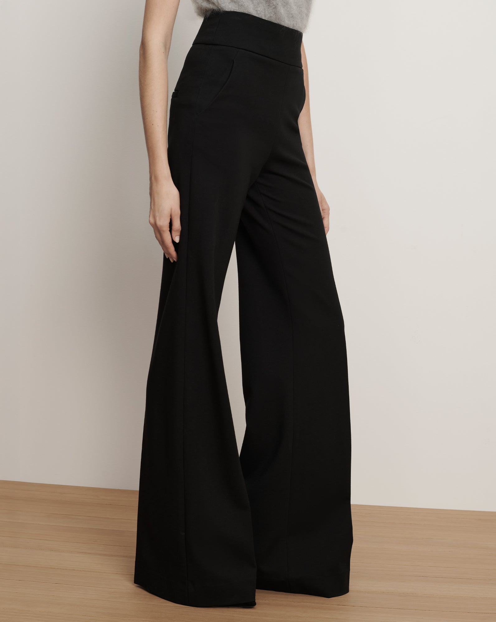 The ponte pant, perfected. Crafted from a smooth, stretch-viscose knit in black, the Kalinda features a super-wide-leg silhouette with a high, three-inch-wide waistband for a sleek, flattering fit. A pressed front crease adds polish and structure, while the invisible back zipper closure ensures a clean finish. Combining the ease of a pull-on pant with the refinement of tailoring, dress it up for work or down for the weekend.