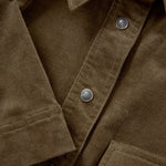 Your everyday uniform—elevated. Crafted from premium stretch cotton in deep green corduroy, the Koulis offers a soft, comfortable feel for all-day wear. Designed with a stand collar and half snap-front placket, this piece gives you the option to wear it as open or closed as you like. Finished with elongated sleeves and both front and side welt pockets for a clean, functional touch. Endlessly versatile—pair with sneakers for a laid-back daytime look or tall boots for something more elevated.