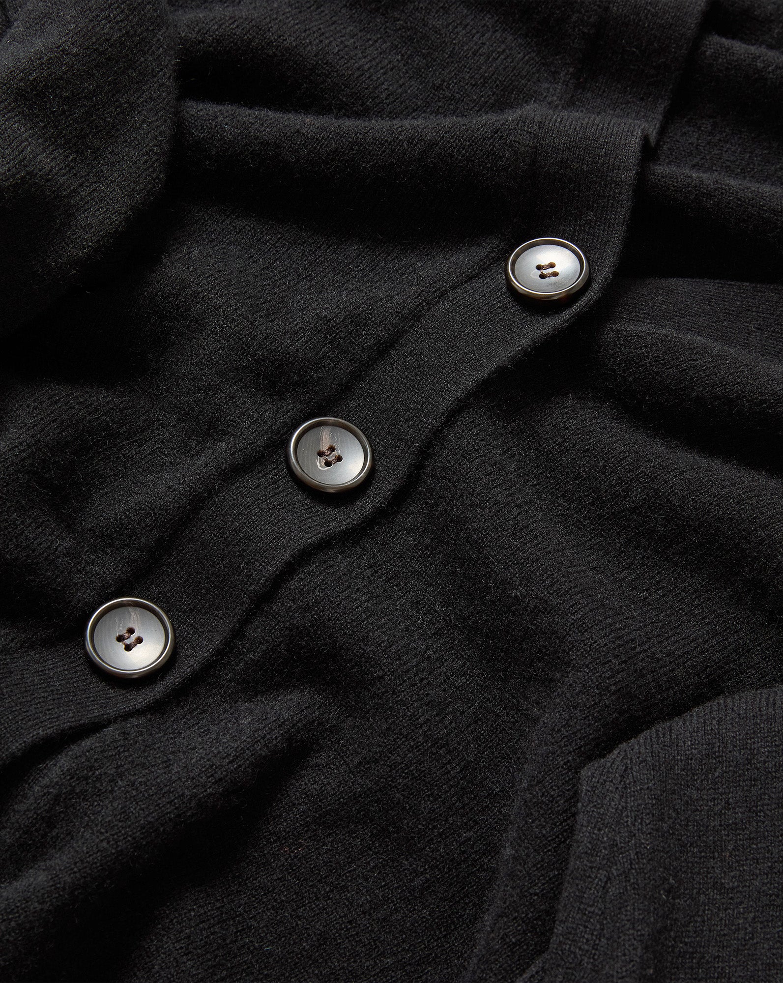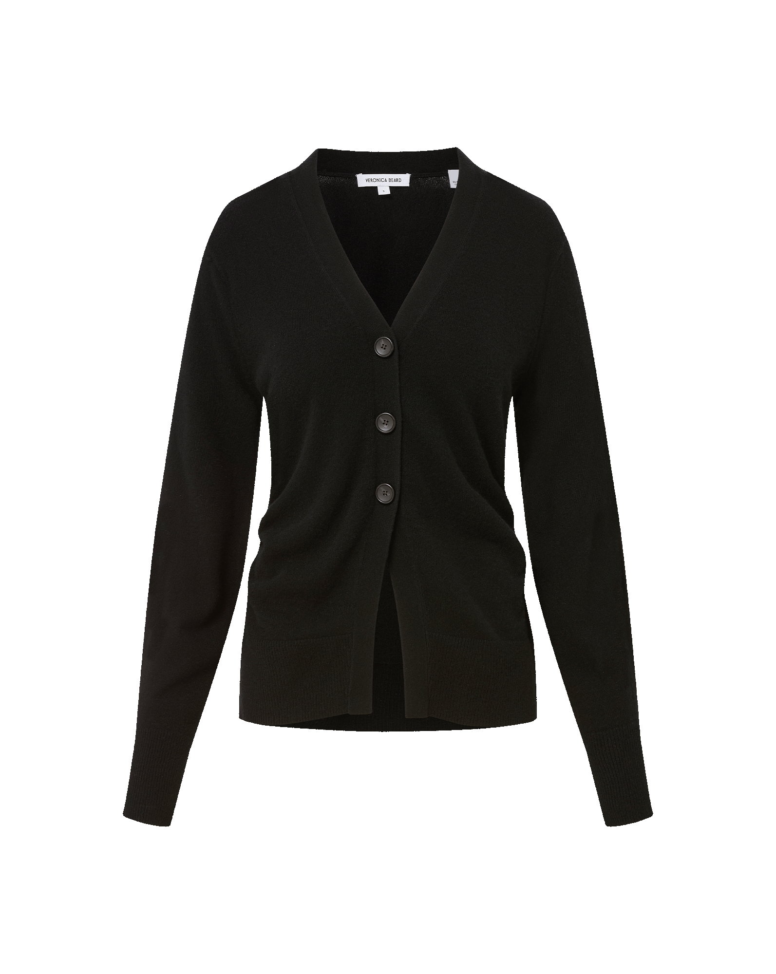 The cardigan that works overtime. Spun from black cashmere with a luxuriously soft feel, the Lamotte features a deep V-neckline with and a split hem for flattering shape. Oversized blouson sleeves and ribbed trims complete the design, making it the perfect finish to any look. Style with trousers for an elevated take or denim for a more laid-back feel.