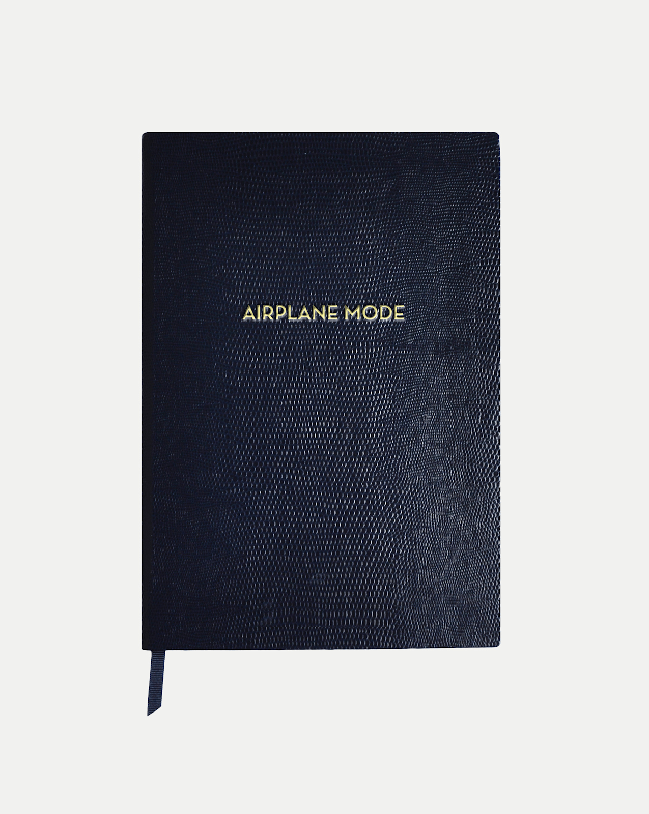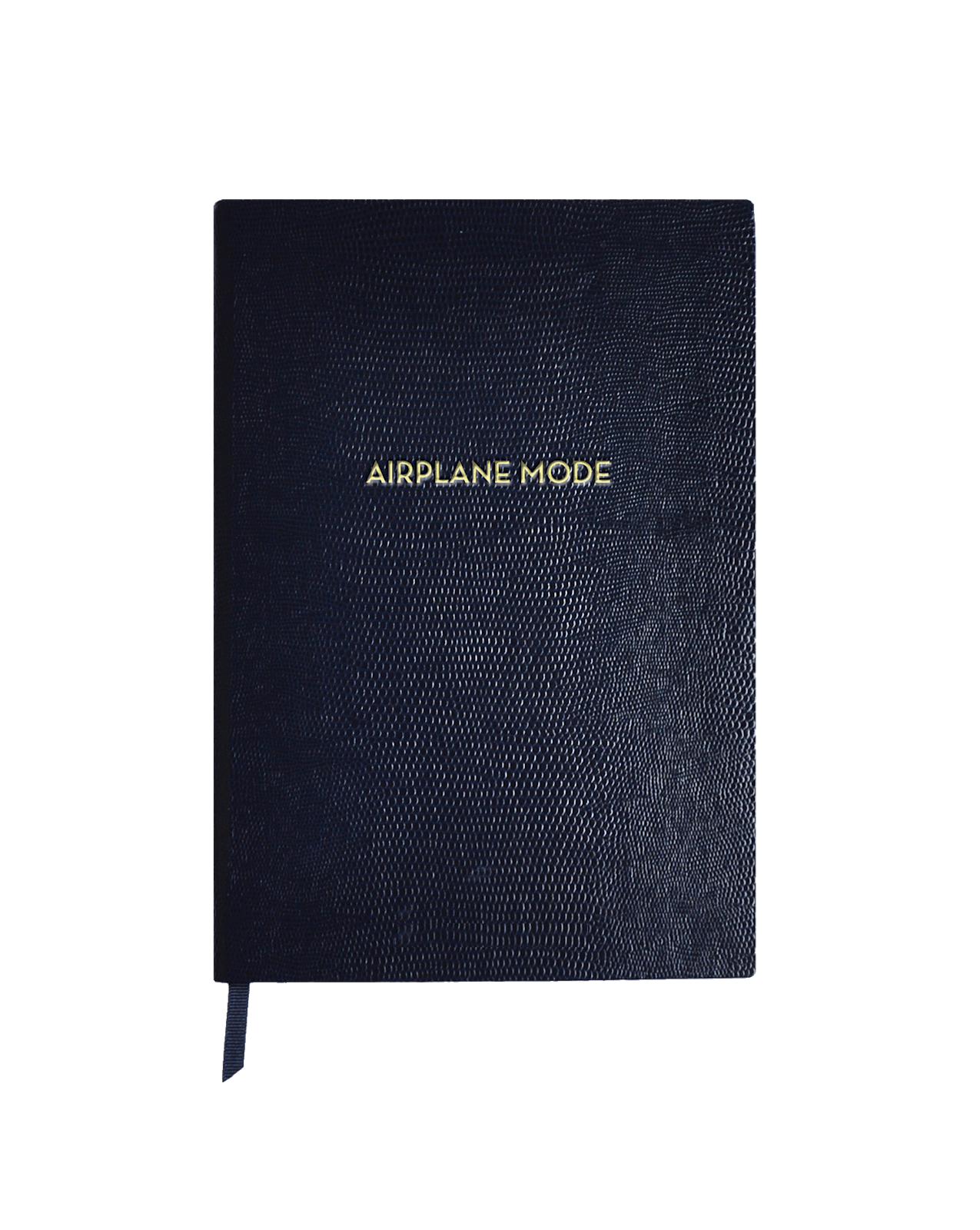 A luxe notebook for capturing your best ideas, dreams, and goals. Handmade in England by classically trained bookbinders, it's crafted from navy lizard-embossed card with gold-embossed text reading Airplane Mode on the front cover. It’s finished with a navy grosgrain ribbon page marker to keep your spot—ready for when inspiration strikes next. Sloan Stationary was founded in 2014 on the idea that sitting at your desk should be joyful. Championing pen-to-paper creativity, the brand crafts stationery that inspires people to savor words and capture big ideas—each piece blending luxury craftsmanship with a wink of humor.