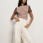 Meet Pruitt—the perfect tee. We obsessed over every detail, from the super-soft ribbing to the curve of the neckline to the short sleeves that fall just where you need them. Expertly crafted from premium stretch cotton in beige, red, white, and black stripes, it's the ultimate foundation piece—dressed up or down, perfect on its own or as a layering piece.