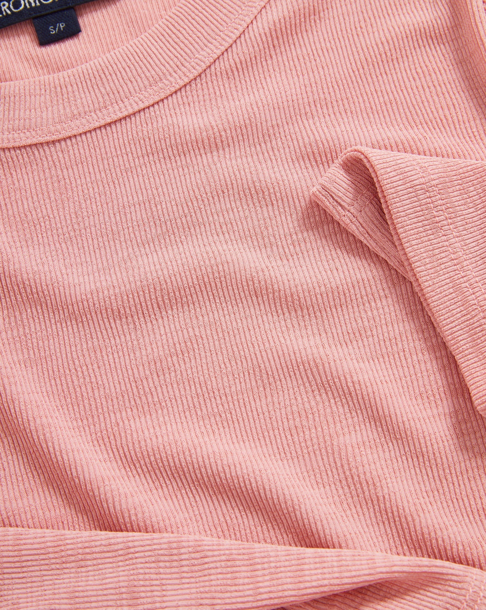 An essential, elevated. Spun from a delicate stretch ribbed knit, the pink Auclair T-shirt is cut for a slim, body-skimming fit and features a clean crew neckline and half sleeves. Wear this semi-sheer top on its own, tucked into denim, or layered under your favorite blazers and cardigans.