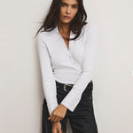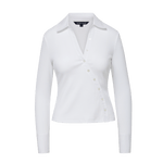 The button-down, reimagined. Made from ribbed pima cotton, the white Brenner top has the ease of a tee in a collared shirt—with a twist. Instead of a classic placket, the buttons fall to the side for a chic wrap effect. Cut slim with long sleeves, it's a versatile go-to—great on its own or as a layering essential.