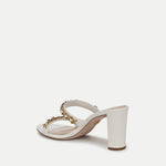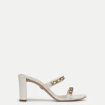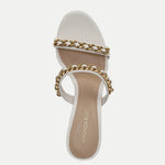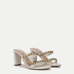 The sleek party shoe every woman needs in her closet. The Gretchen is expertly tailored from premium leather, accented with gold chain-link details along the vamp and toe straps. A widened three-inch heel adds comfortable height while remaining polished and refined. Pair with your favorite LBD for a night out.
