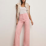 The Taylor jean you know and love—now in pink Dream Denim, our impossibly soft, most comfortable denim yet. Made in LA and thoughtfully designed, it's a high-rise, wide-leg silhouette that strikes the right balance between relaxed and refined. Our signature V-shaped belt loop completes the look. Style with a tee and flats for day; dress it up with a printed top and heels for nights out.