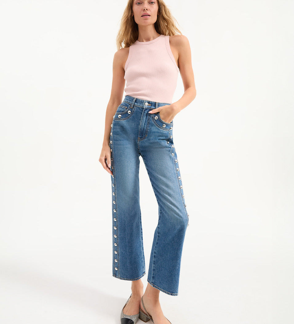 Veronica Beard - Dylan Studded Straight-Leg Jean