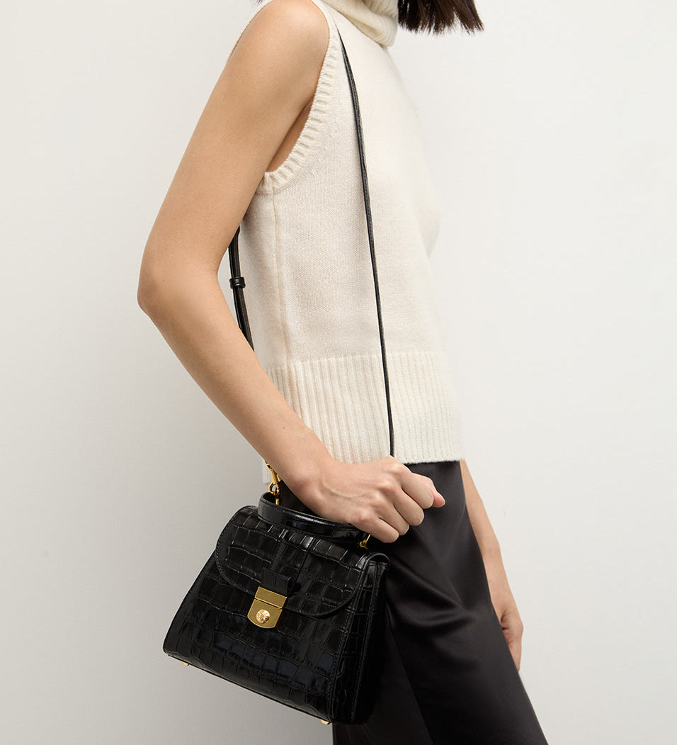 Veronica Beard - Croc-Embossed Crest Lock Top Handle Bag