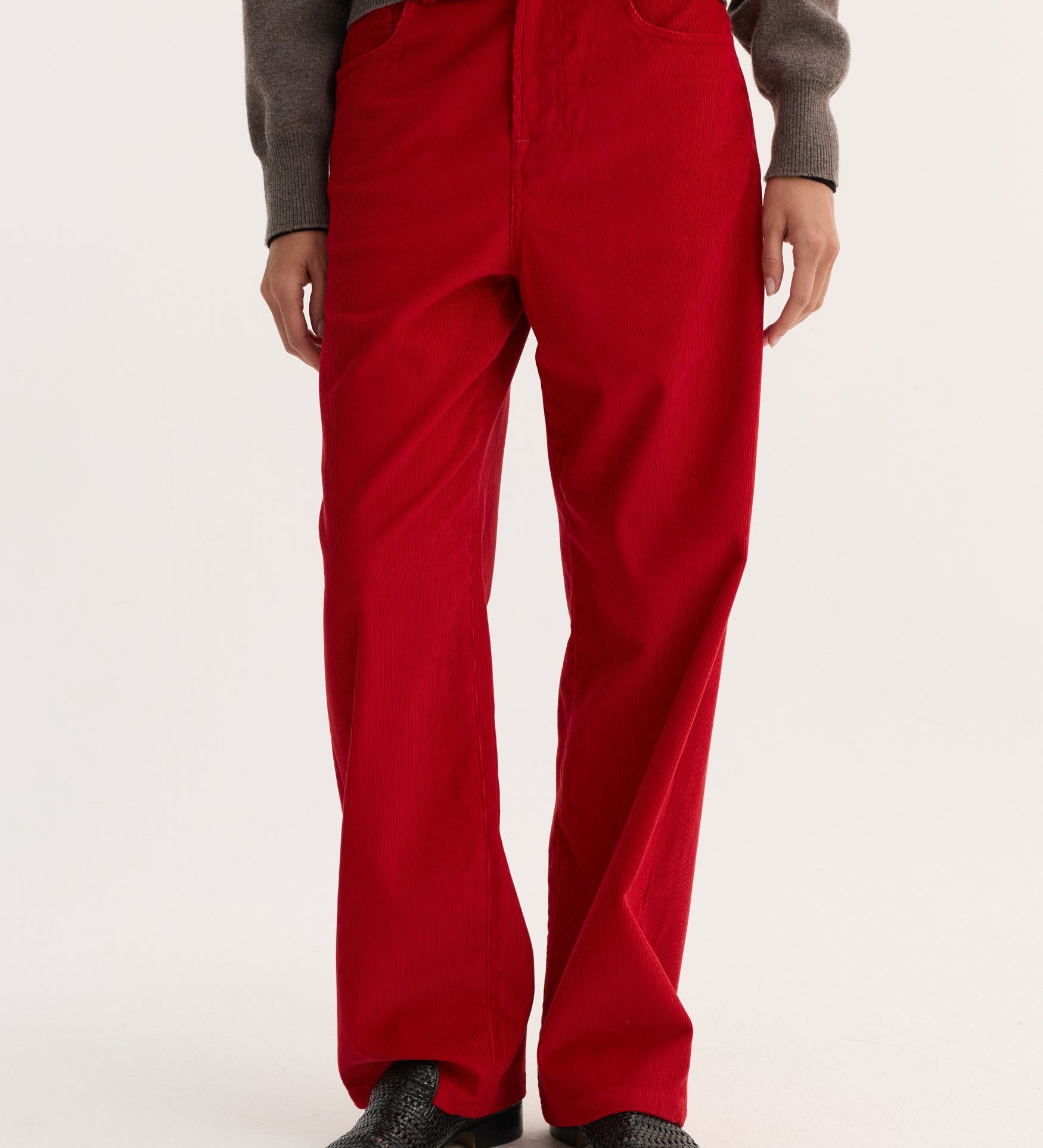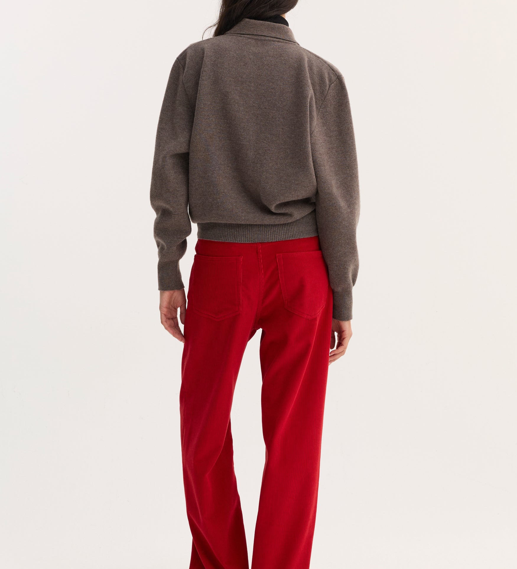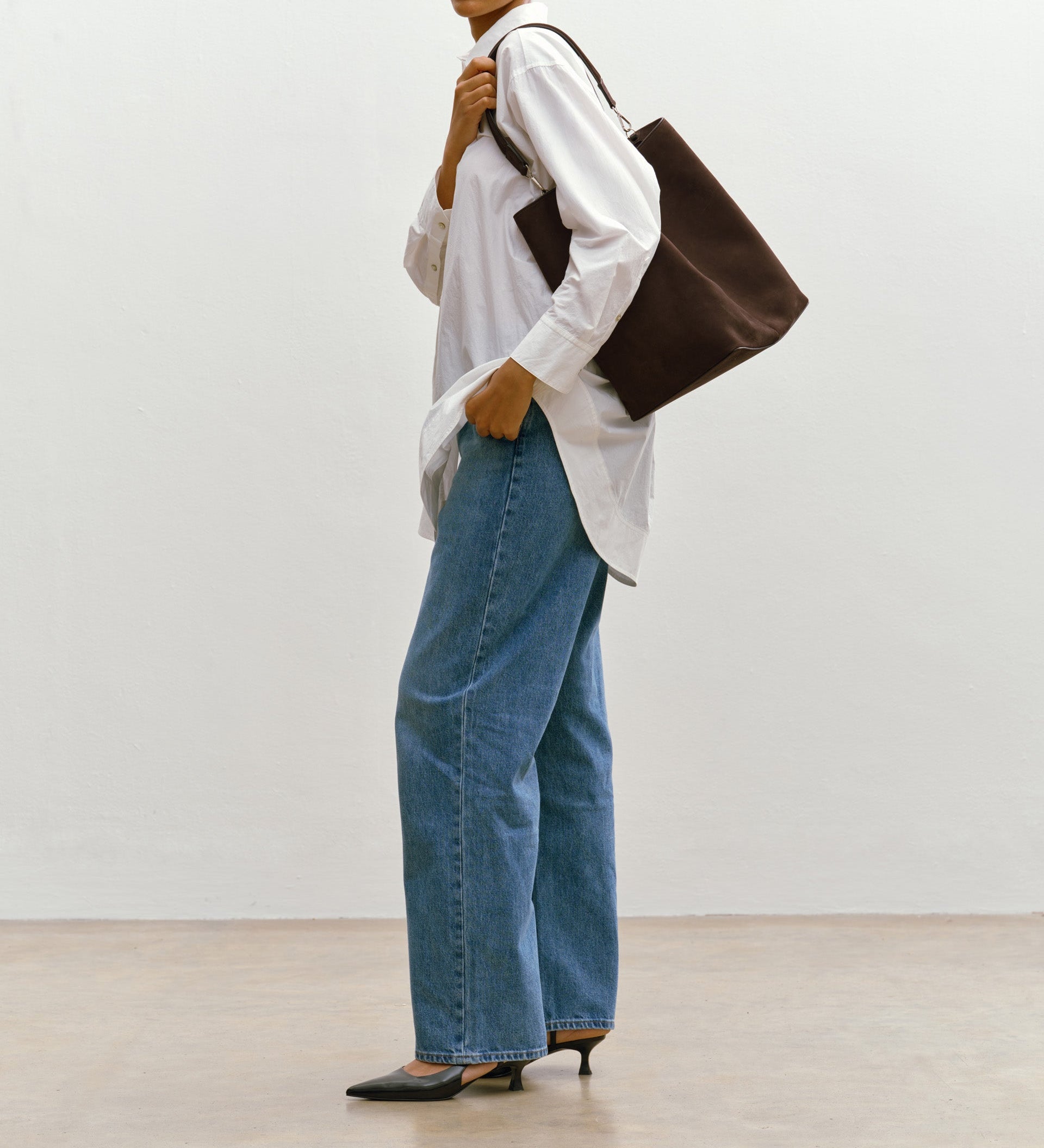 Winter denim matters more than summer denim because you wear it under coats, with boots, through long days. It needs to keep its shape and hold the line. The knit has to have structure (no collapsing necklines, no slouch that turns sleepy). Then you add one polished detail - bag, glove, ring - and suddenly the whole outfit reads as considered.