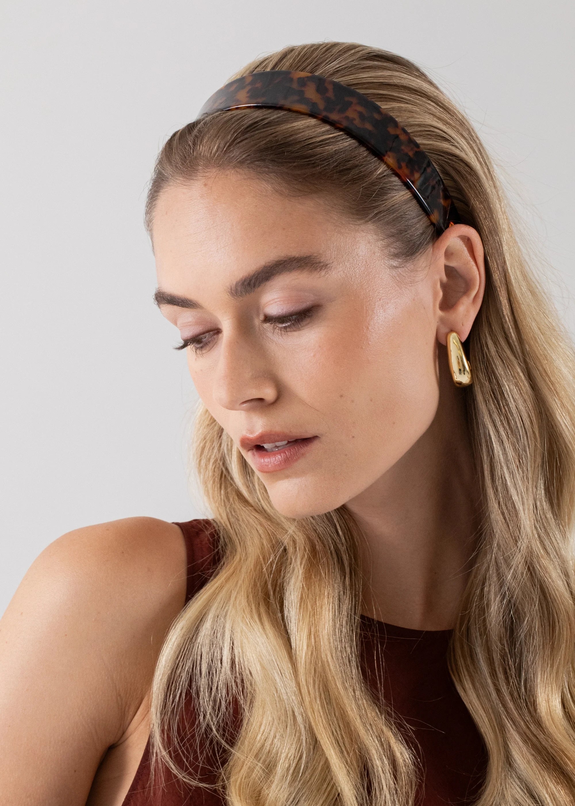 Inspired by the cult-classic looks seen on Carolyn Bessette-Kennedy in the 90s, the Tortoise Lydia Headband is an essential piece in every headband collection. Its high-quality acetate is emblazoned with a tortoiseshell pattern. The fit is thoughtfully designed with comfort in mind, complete with a golden logo that is inset to ensure the headband lays flush against the head.