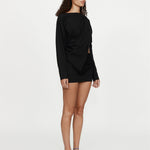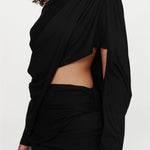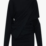 Crafted in structured cotton, this Aiba Draped Cotton Jersey Long Sleeve Dress features a sculptural draped overlay that twists across the body. An asymmetric cutout at the waist reveals skin through the gathered silhouette, balancing volume with form. Style with structural heels or Pierced Flip Flops for an elevated approach to day-to-night dressing.