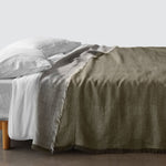 Relaxed linen. Eyelash fringe. Handwoven texture. Add a laid-back, organic feel to your space with this beautiful linen bed blanket (fully covers a queen or king size bed).