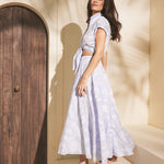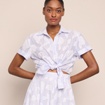 A reimagined classic short sleeve button up, the Asbury Top adds an extra dose of ease and glamour to an everyday basic. The cropped shirt features a button opening, cuffed sleeve and a front tie bow detail.