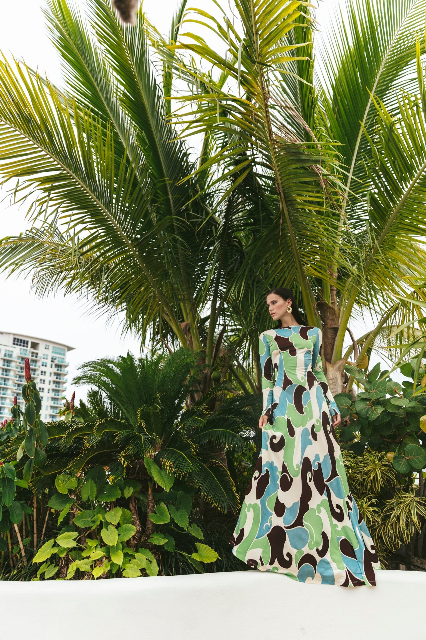 • Longsleeve maxi dropwaist dress with shaped waist seam
