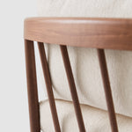 Classic forms. Modern refinement. Crafted with domestically-sourced walnut, this stunning armchair blends a rounded frame with angled spokes for an effortless charm. Left unstained to preserve the natural beauty of the wood hue and grain, each piece is finished with plush, removable cushions that you can sink into at the end of a long day.