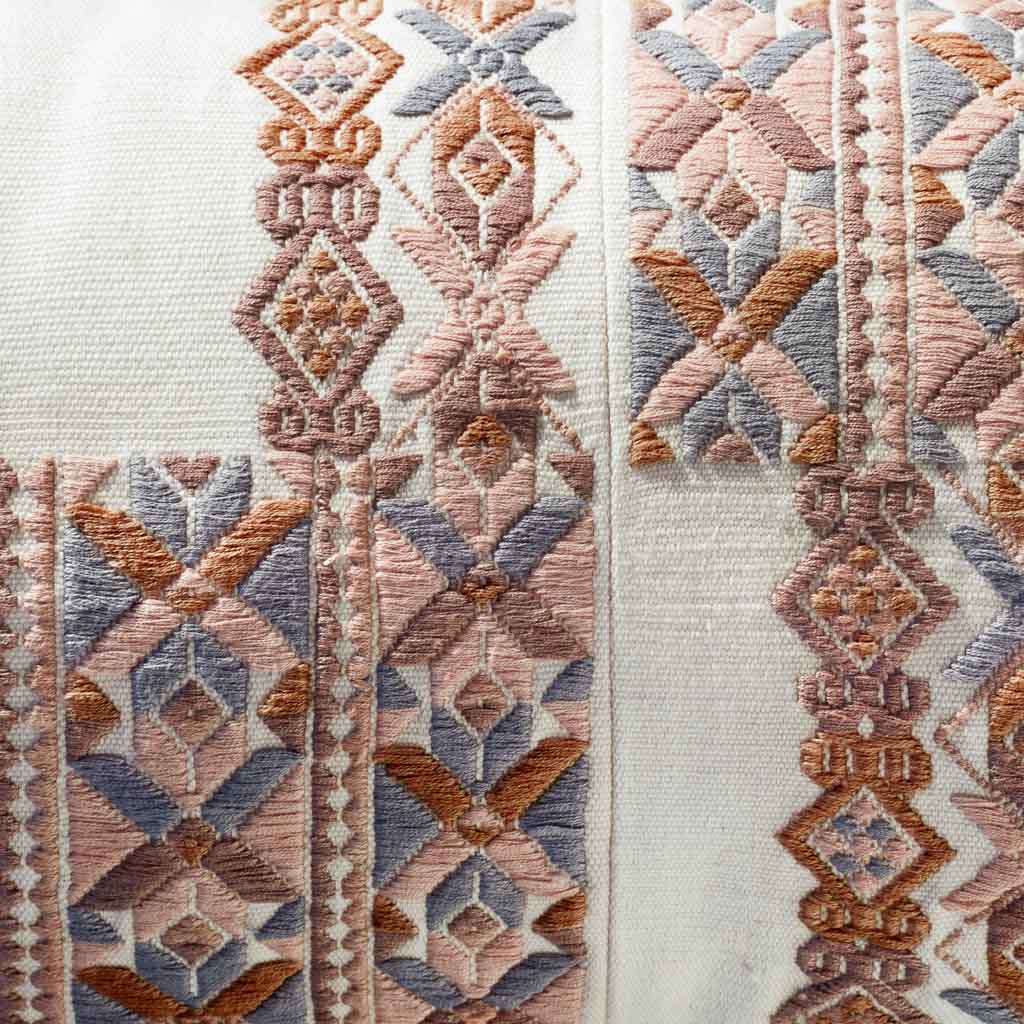 Traditional Mayan motifs and a striking color palette come together in this lumbar pillow. A true statement maker, this piece can fly solo on a bed or a couch – this one pillow adds an artful touch to any space.