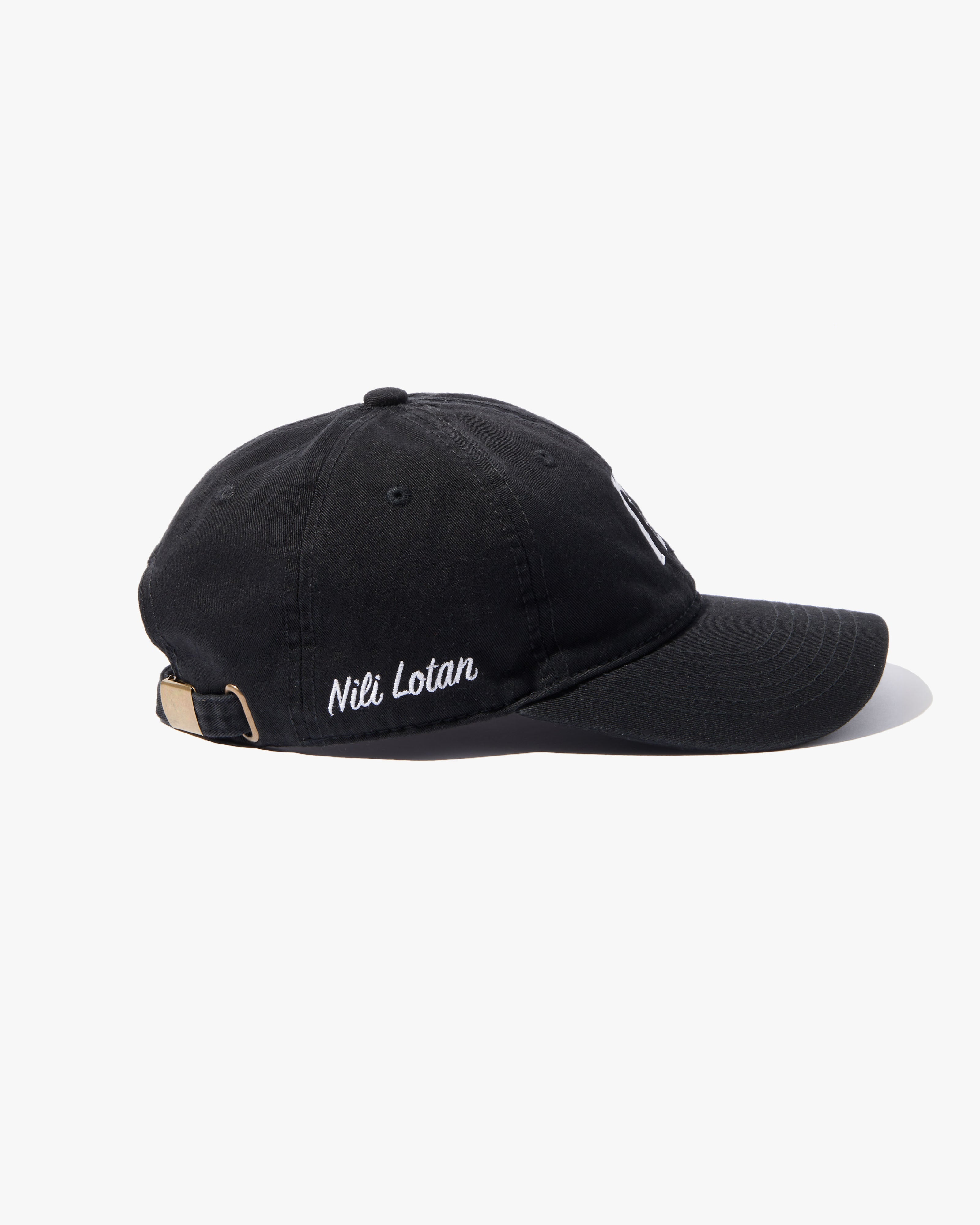 Baseball cap with ‘n’ initial embroidery. ‘Nili Lotan’ accent embroidery on black style only.